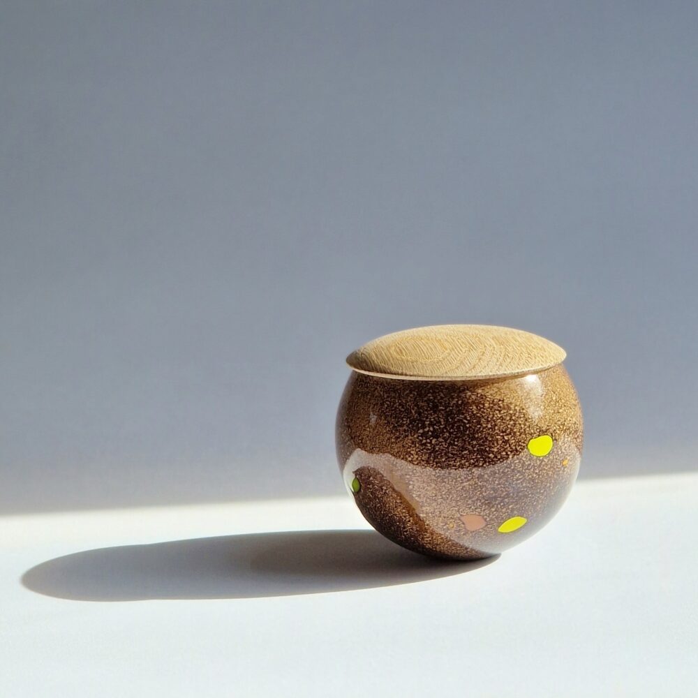 De mange lag af farve og glas giver krukken et helt specielt udtryk.